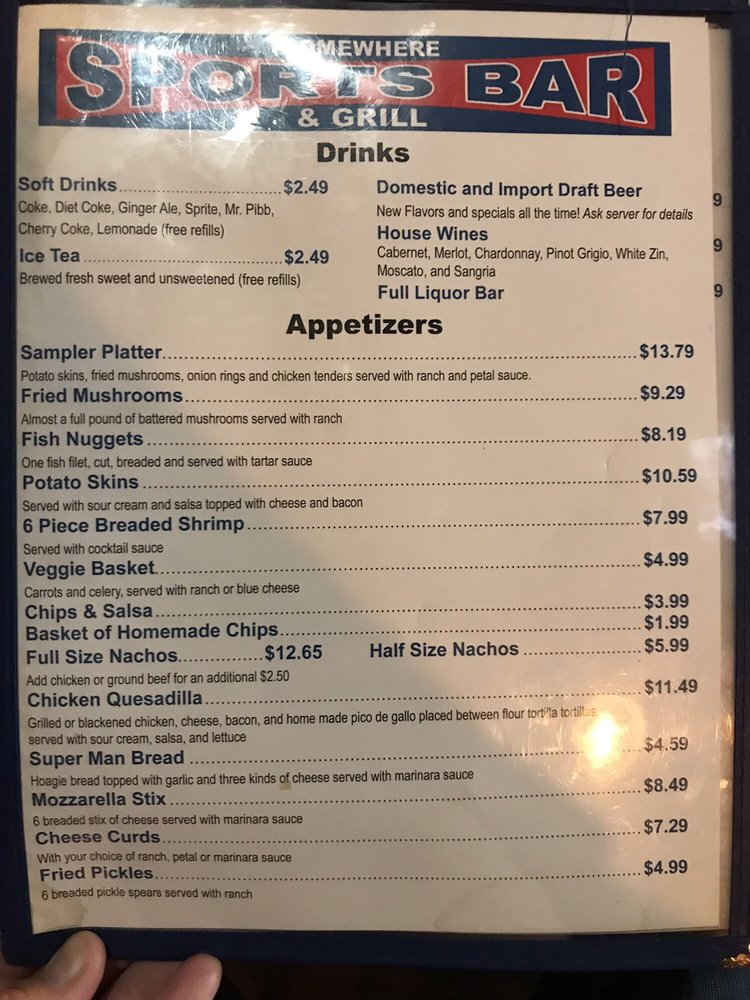 Somewhere Sports Bar & Grill Menu (Update 2025)